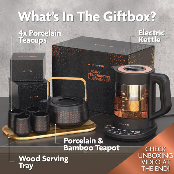 Vianté Electric Kettle With Tea Infuser For Loose Leaf Tea. Hot Tea Maker With Temperature Control And Automatic Shut Off. Tea Kettle With Brewing Programs. 1.5 Liters Capacity