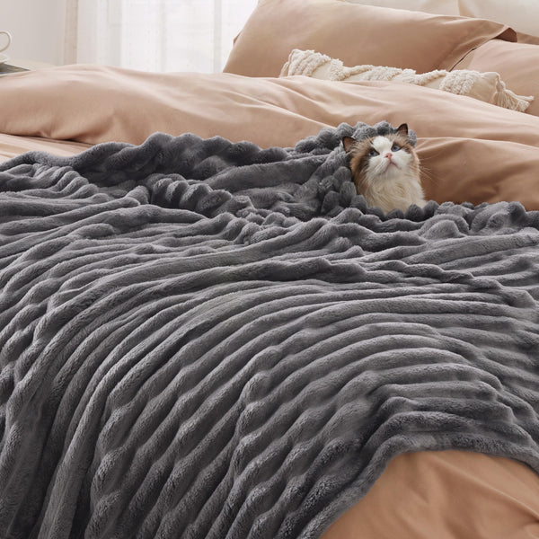 • Exquisite Textures: This fuzzy blanket features a classic stripe pattern that creates an underlying unity to coordinate with your room's decor.